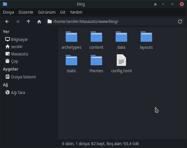 Hugo bize gerekli dosyaları otomatik olarak belirttiğimiz klasöre oluşturdu:
