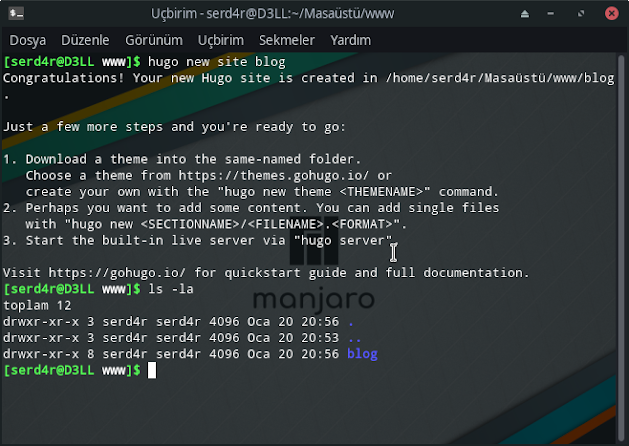 Ben GoHugo statik site oluşturucusunu kullandım ve manjaro üzerinde kurulu olarak geliyor :)